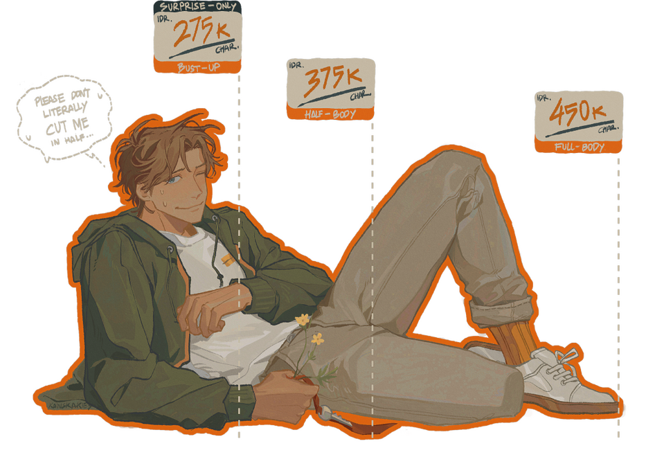 [Surprise-Type Commission] means I will decide how the whole thing will be done and only send the finished piece to you.There are no revisions or updates available in between the commissioning progress. I will only pick any hints or contexts available from your reference to decide the overall pose, expressions, dynamics, and decorations. You can ask for minor revisions around inaccurate character's complexion or missing details after I send you the finished piece.